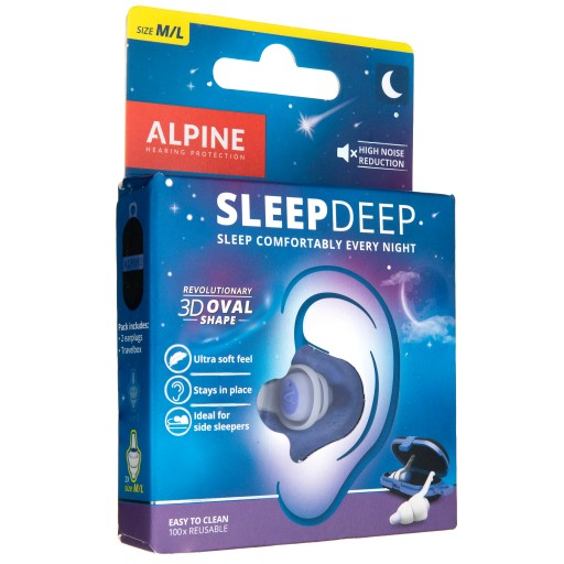 - Слід знати, що особливий склад беруш Alpine Sleepdeep гарантує, що вони залишаться на місці всю ніч. Тож через пробку, яка випала під час сну, прокинутися не буде! Якщо ви маєте звичку спати на боці, вам не доведеться турбуватися про свої рухи: заглушки ідеально тримаються на місці, не завдаючи болю при зміні положення.
