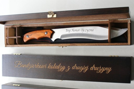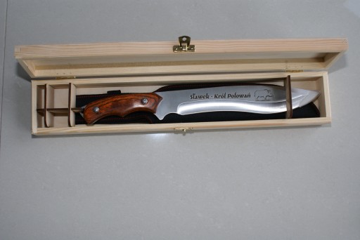 Він пропонує елегантний мисливський ніж з вашим гравіюванням в упаковці