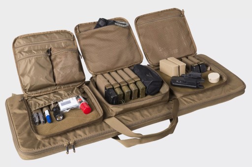 Сумка Helikon Double Upper Rifle Bag розроблена для безпечного та зручного перенесення карабіна AR у двоствольній конфігурації з прикріпленою оптикою, двох короткоствольних карабінів AR або двох карабінів AK у базовій конфігурації, у максимально компактному форматі. Сумку можна носити за чотири міцні ручки і на розстібаються і, при необхідності, заховані в спеціальні кишені ремінці. На зовнішній частині чохла три великих кишені. Кожен із них має дещо різний дизайн інтер’єру. Кожен має кишеню на блискавці та панелі на липучці, призначені для інтеграції зі вставками Helikon Versatile Insert System. Основне відділення сумки оснащене системою стрічкових ланок, через які можна протягувати затискачі-липучки, що утримують зброю, будь-якої конфігурації. Еластичні стрічки вміщають чистячі стрижні та чистячі елементи для карабінів, а спеціально розроблені посилені кишені - обмежувачі - не дозволять зброї зрушуватися під час транспортування. Чохол з Cordura 500D.