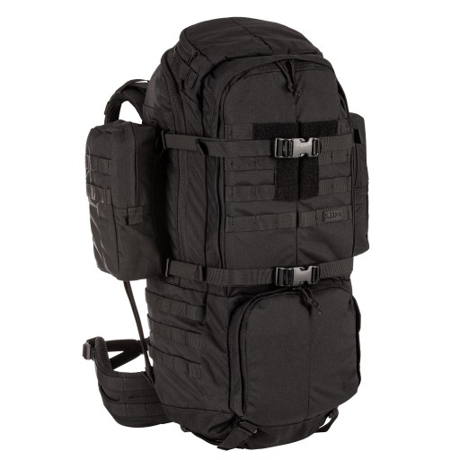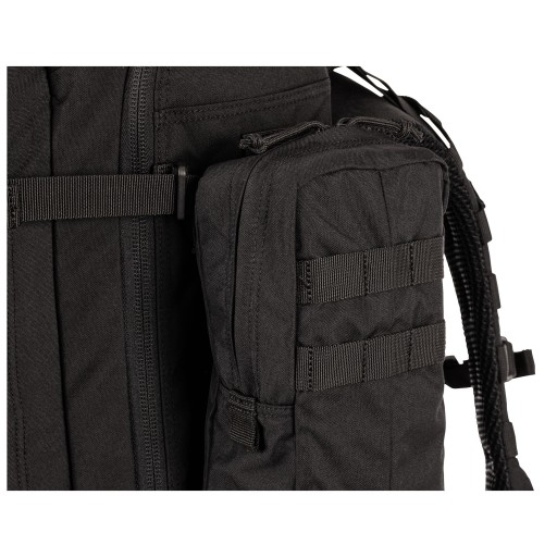 Ось він - RUSH100, найбільший рюкзак в пропозиції 5.11 об'ємом 60 літрів. Безсумнівно, одна з його найбільших переваг полягає в тому, що ми можемо змінювати його конфігурації. Бретелі відстібаються і регулюються по висоті, набедренний ремінь знімається і може використовуватися як самостійний ремінь, а додаткові бічні кишені можна від’єднати і використовувати як сумку через плече. Незважаючи на свій розмір, він легкий завдяки використанню нейлону, не втрачаючи міцності. Він має просте, але практичне розташування кишень, в яких ми не загубимося, а найголовніше завжди буде під рукою.