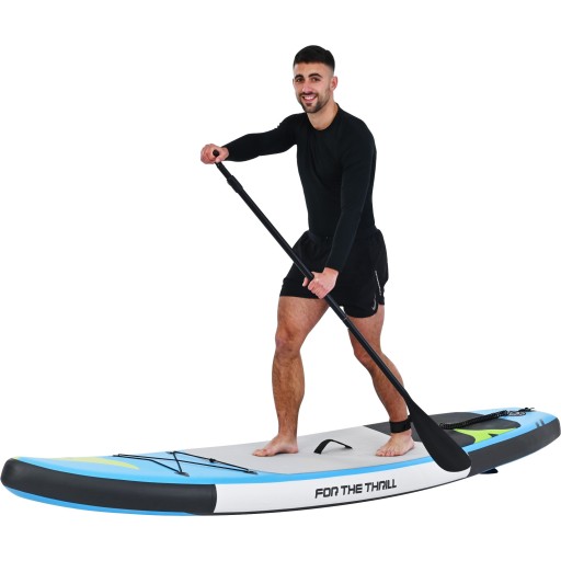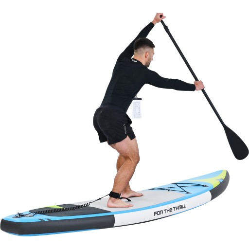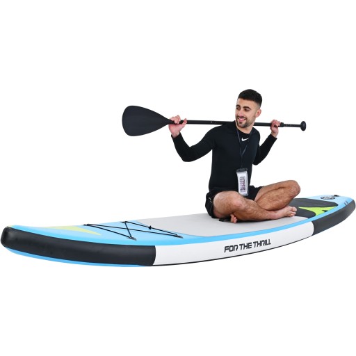 Щоб отримати задоволення від моря та озера, SUP є хорошим вибором. Завдяки процесу виробництва матеріалу Drop Stitch SUP дошка дуже міцна. Завдяки суворому процесу виробництва SUP не деформується навіть після тривалого перебування на сонці та стійкий до УФ-променів і корозії, спричиненої морською водою. Завдяки неслизькій нижній підкладці та кріпленню для ременя для ніг навіть новачки зможуть швидко та безпечно відчути задоволення від SUP. Аксесуари включають регульоване весло, рюкзак, ручний насос, ремінь для ніг, інструмент для латання, водонепроникний чохол, хвостовий плавник. Багате оснащення дозволяє легко транспортувати між різними водоймами і швидко встановити. Відчуйте безмежність моря, відчуйте спокій озера та зміцнійте себе SUP подарує вам нескінченну радість у воді.
