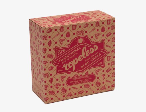 Бренд Ropeless, дбаючи про навколишнє середовище, представив першу лінійку класних дошок в безпластиковій упаковці. Їх оригінальна серія крейди для скелелазіння наразі включає блоки, крейдяний порошок і кульки.