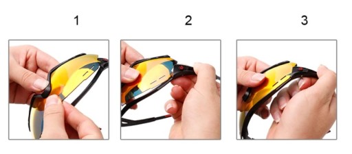 1. Вставте лінзи в нижню частину оправи окулярів.