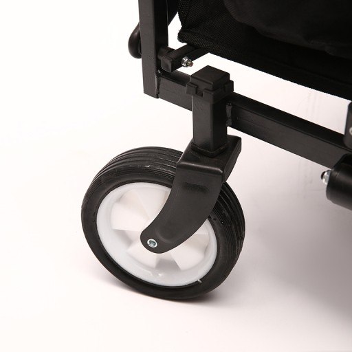 Коляска легко переносить до 80-90 кг навантаження. Завдяки великим пластиковим колесам не боїться піску та бруду. Його складання займає лише мить, тому немає проблем із тривалим складанням або розкладанням і місцем для зберігання. Він компактний і міцний.