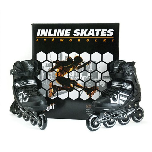 - Колеса: чорні колеса з ПУ, твердість 82A, розміри: 36-39: 76 мм, 40-43: 80 мм, 43-46: 84 мм