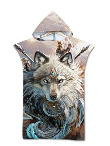 Рушник з капюшоном, прикрашений унікальним візерунком вовка з місяцями, від якого закрутяться голови на пляжі.