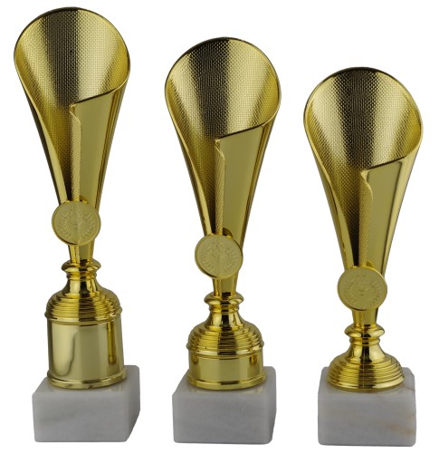 - Широкий вибір кришталевих і дерев'яних трофеїв, литих і скляних статуеток, медалей і рекламних штучок.
