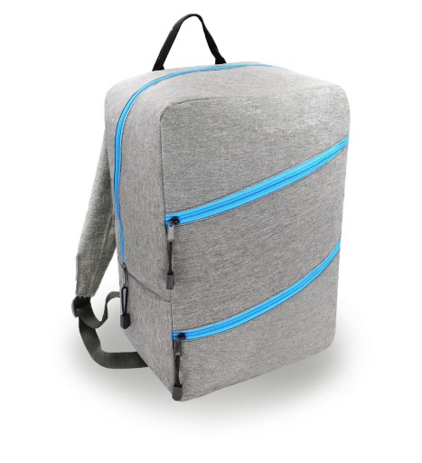 Рюкзак виготовлений з високоякісного водонепроникного, стійкого до стирання матеріалу CODURA 9500D. Завдяки своїм розмірам він ідеально відповідає актуальним вимогам авіакомпанії WIZZAIR як безкоштовна ручна поклажа. Рюкзак має регульовані лямки та широкий ремінь, який дозволяє кріпити рюкзак до висувної ручки валізи, що робить подорож більш комфортною. У верхній частині рюкзака є тканинна ручка, яка дозволяє тримати рюкзак в руці. Рюкзак має велике основне відділення та простору передню кишеню - обидва закриваються на блискавку.