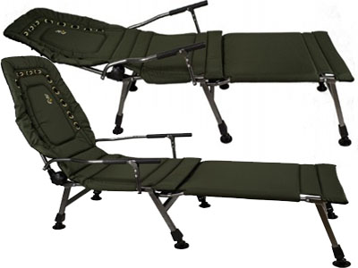 Оснащена підлокітниками і функцією регулювання спинки і ніжок. Регульовані ніжки дозволяють розташуватися навіть на складній місцевості.