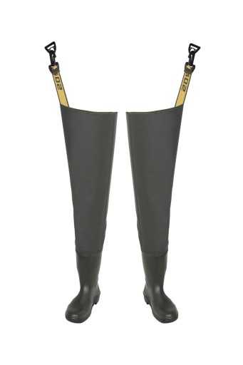 ЧУДОВИЙ, МІЦНИЙ І 100% ВОДОСТІЙКИЙ, ДЛЯ ПРОХОДЖЕННЯ У ВОДІ. Високі рибальські черевики з постійним підігрівом башмаків. Модель довжиною до стегон з гумовими опорними кріпленнями. Зручне кріплення на поясі брюк. Конструкція вейдерсів дозволяє швидко одягати і знімати їх.