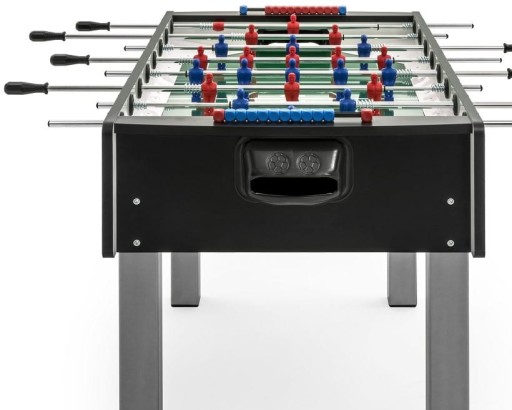 Завдяки скляній ігровій поверхні гра проходить максимально швидко і плавно, що ще більше покращується міцними сталевими стрижнями. Міцна шафа та міцні металеві ніжки забезпечують належну міцність столу, а гладке оздоблення з чорного ламінату додає сучасного стилю.