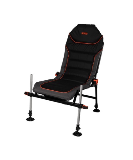Зручний стільчик-годівниця від Frenzee. Регульована висока м'яка спинка забезпечує великий комфорт під час риболовлі. Легка, але стабільна алюмінієво-сталева конструкція. Передні регульовані ніжки діаметром 25 мм, на які можна кріпити аксесуари, а обидві ніжки мають різьбовий отвір. Великі широкі ніжки забезпечують стійкість на будь-якій місцевості.