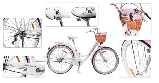 ЖІНОЧИЙ МІСЬКИЙ ВЕЛОСИПЕД, СВІТЛО, БРИЗКОВИКИ, ВЕЛИКИЙ ПЛЕТЕНИЙ КОШИК, КОЛЕСА, 26 СВІТЛІКІВ