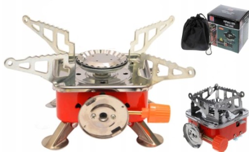 Оснащений п'єзоелектричним запалюванням, складними ніжками та чотирма міцними металевими складними кронштейнами під посудиною.