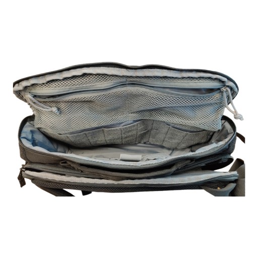 - Основне відділення з внутрішнім органайзером - сітчасті кишені на блискавці на клапані, з'єднана панель MOLLE з липучкою для кріплення додаткових аксесуарів, 7 менших кишень різного розміру та окреме відділення для планшета / маленького ноутбука, напр. Macbook Air 13.3" / документи.