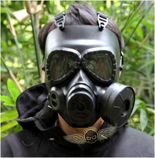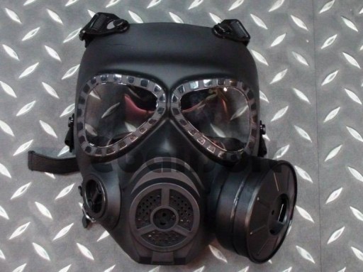 Повна захисна маска TOXIC MASK з працюючим вентилятором у «повітряному фільтрі» для запобігання запотівання окулярів. Чудове ігрове обладнання типу ASG. Вентилятор живиться від двох батарейок АА (не входять в комплект). Розмір регулюється за допомогою лямок. Маска виготовлена з якісного пластику (АБС), тому повністю захищає обличчя. Маска також має вентиляційні отвори. Очні отвори закриті товстим полікарбонатним склом (але без сертифіката, рекомендовано використання додаткових стекол).