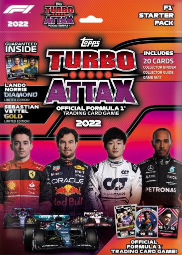 Turbo Attax повертається з новим сезоном F1! Абсолютно нові карти швидкісних гладіаторів, таких як Льюїс Гамільтон і Макс Ферстаппен, а також таких нових зірок, як Лендо Норріс, Джордж Рассел і Мік Шумахер. Ви можете отримати клубні картки чемпіонів Формули 1, картки суперзірок, паралельні картки та надзвичайно рідкісні (золоті та діамантові) картки обмеженого випуску. У колекції можна зібрати понад 350 карток. Стартовий набір включає альбом колекційних карток, посібник з гри, 20 карток, у тому числі 1 золоту та 1 діамантову лімітовану картку, 1 мегакарту, велику ігрову дошку формату A2 та контрольний список. Випадкова доставка.