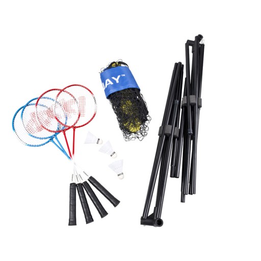 У набір входить: 4 ракетки + 3 дротики + сітка + металеві стійки з натяжними шнурами.