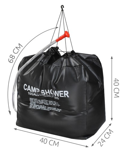 Відчуйте незалежність і свободу під час подорожі, кемпінгу або в саду - сонячний душ вам у цьому допоможе! Наповніть його водою і поставте на сонце. Завдяки сонячним променям через короткий проміжок часу (близько 2 годин) вода в сумці стає теплою, ідеально підходить для прийняття теплого душу. Під час поїздки на автомобілі можна поставити в багажник душ, наповнений водою, і вода нагріється до температури, достатньої для вечірнього миття. Ще одне рішення, яке варто рекомендувати, - залишити душ на капоті автомобіля під час зупинки.
