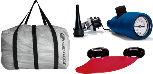 - У комплекті: покращена сумка для перенесення, манометр Easy Inflation, знімне ребро, ремонтний набір, посібник користувача