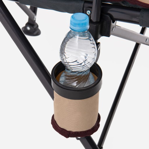 Складне кемпінгове крісло - ідеальний вибір для людей, які цінують комфорт під час проведення часу на природі. Це ідеальний вибір для тераси вдома, кемпінгу, відпочинку, у парку або для барбекю. Крісло характеризується м'якою, стьобаною, зручною оббивкою. Виріб також оснащений зручними підлокітниками з практичним тримачем для чашки або пляшки.