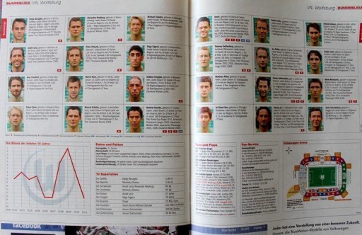 : класичний скарб трьох вищих німецьких футбольних ліг, підготовлений редакцією професійного німецького журналу «kicker» на сезон 2011/2012. Найбільше місця було приділено презентації команд з 1. Бундесліги. Кожен клуб представлено великим текстом і на чотирьох сторінках скарбу (фото команди, інформація про клуб, команда з детальною статистикою гравців, статистика команди, історичні записи, профіль тренера, інформація про стадіон тощо). У Скарбниці також представлені всі клуби 2-ї Бундесліги та 3-ї Ліги (фото команд, склад, трансфери, інформація про клуб). Крім того, видання містить підсумкові таблиці ліг і підсумкові результати кубків у всіх європейських країнах, багато статистичних даних за весь час щодо історії Бундесліги та розклад німецьких ліг на сезон 2011/2012.