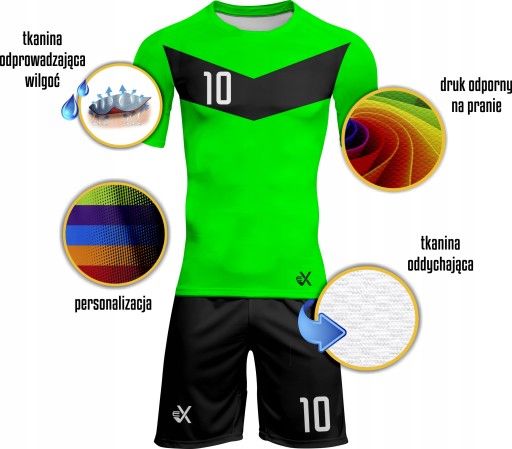 Набір виготовлений з легкого і м'якого матеріалу, який забезпечує високий комфорт під час використання, має сітчасту структуру з внутрішньої сторони, що зменшує контакт матеріалу зі шкірою. Створений для забезпечення оптимальної регуляції температури тіла під час фізичних вправ шляхом видалення вологи з поверхні шкіри, запобігаючи при цьому надмірній втраті тепла та уникаючи ефекту прилипання мокрого матеріалу до тіла. Трикотаж забезпечує оптимальну температуру, запобігаючи як перегріву, так і охолодженню тіла.