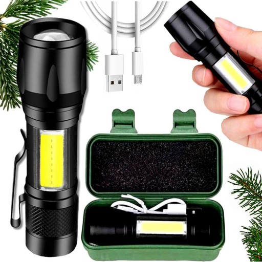 АЛЮМІНІЄВИЙ МІНІ-СВІТЛОДІОДНИЙ ЛІХТАРИК XPE + COB + USB-КАБЕЛЬ В ЧОХЛІ