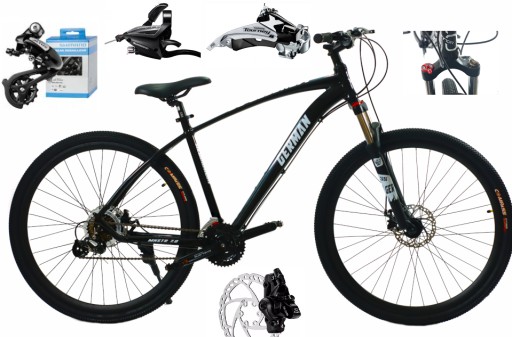 Надійне обладнання від світового лідера велосипедних компонентів Shimano: задній перемикач Shimano ALTUS, механізм вільного ходу Shimano, передній перемикач Shimano Tourney.