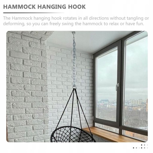 Гачок для підвішування гамака обертається в усіх напрямках, не заплутуючись і не деформуючись, тому ви можете вільно розгойдувати гамак, щоб відпочити чи розважитися.