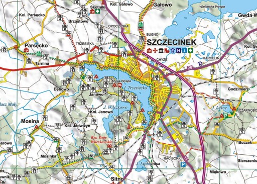 - Транспорт, зв’язок, інформація для водіїв: національні, провінційні та другорядні дороги, ґрунтові дороги, залізничні колії, стоянки, стоянки транспортних засобів.