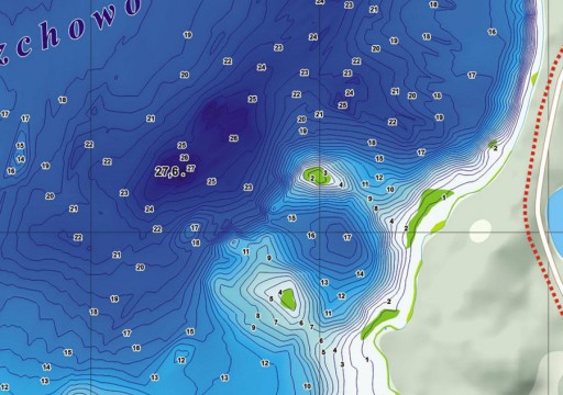 Інша колекція батиметричних карт, що містить інформацію про 14 озер у Щецинському районі разом із планами міст, що супроводжують озера. Йдеться про такі водосховища: Вержхово, Коморже, Любицько Велке та Мале, Піле, Стшешин, Броди, Дренжно, Коце Дуже та Мале, Стшешин, Тшесецько, Сьмідово, Цеміно та Вілчково. Як і у випадку з попередніми публікаціями про воду, карти Щецинецького поозер'я, окрім точної батиметрії, містять ряд відомостей про розташування об'єктів, особливо важливих для рибалок. Під час інвентаризації берегів озера, яка проводилася у 2015-2021 роках, були позначені всі причали, місця риболовлі, причали та місця спуску човнів, а також розміщення підводних перешкод. Крім того, карти містять інформацію про поширення прибережної та плаваючої рослинності, а також розташування підводних лук, що особливо важливо при плануванні риболовлі з човна. Кожне озеро представлено як у вигляді барвистого батиметричного плану, так і тривимірної візуалізації, що яскраво імітує рельєф дна.