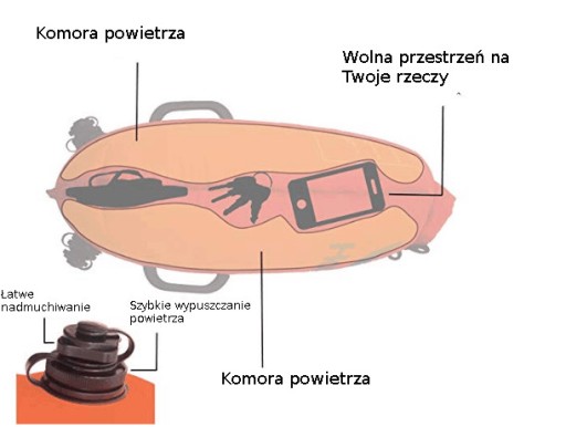 Швидке та зручне використання. Покладіть свої речі (без гострих країв), загорніть буй, як показано на малюнку нижче, надуйте буй через клапан і все!