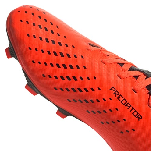 Adidas Predator Accuracy.4 — це зручне взуття для розважальної гри в софтбол і на твердому земляному полі. М'який синтетичний верх забезпечує зручне прилягання до стопи та краще відчуття м'яча. Підошва адаптована для гри на різних поверхнях і забезпечує зчеплення і динаміку під час погонь і швидких поворотів.