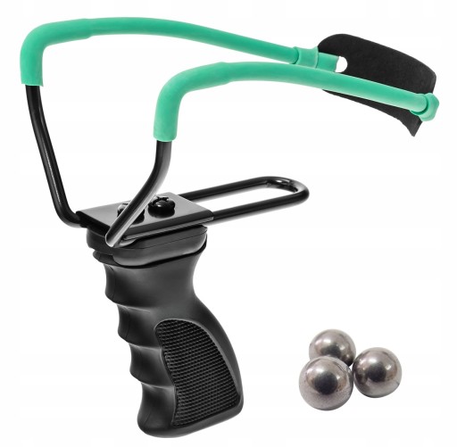 Класична рогатка з регульованими дужками з міцної сталі, покритої чорною емаллю. Регулювання здійснюється двома гвинтами.