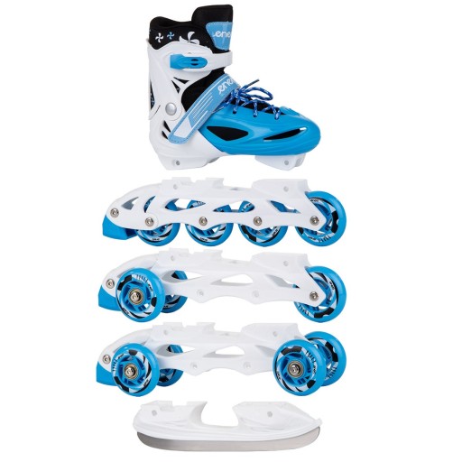 Вони характеризуються дуже хорошими ходовими якостями. Цього вдалося досягти завдяки легким алюмінієвим полозам і надійній системі трьох застібок, що складається з регульованої пряжки Quick Lock, ремінця на липучці і шнурків, які міцно тримають ноги. Усе це дозволяє цій моделі добре працювати в будь-яких умовах, забезпечуючи унікальні враження від водіння в кожному з 4 видів. Їх висока якість гарантує довговічність і стійкість до механічних пошкоджень. КОВЗАНИ - РОЛИКІ - 4IN1 ENERO SKATES гарантують чисте задоволення від катання.