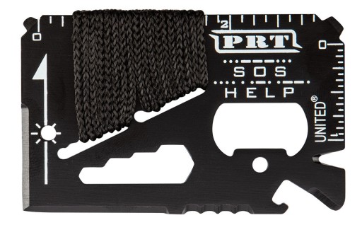 - Багатофункціональна карта з нержавіючої сталі (включає відкривачку для пляшок, консервний ножик, пилку, накидний ключ розміром 4, 5, 6, 7 мм, лінійку, плоску викрутку, ніж, паракорд)