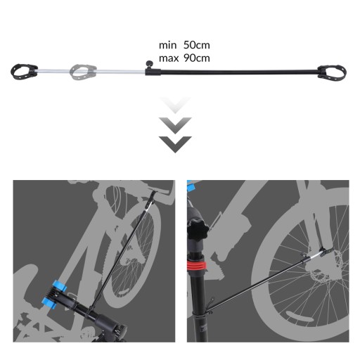 Можна подовжити від 50 до 90 см і гнучко прикріпити за допомогою еластичних гумових ременів.