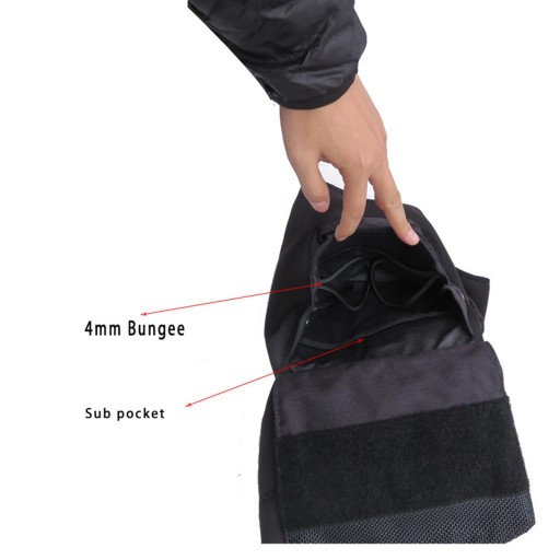 : з кишенями для зберігання з обох сторін у кожному напрямку, має 4 мм банджі та додаткову блискавку в одному напрямку на шарі