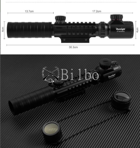 Лазерний приціл інтегрований з оптикою та електронікою для забезпечення широкого поля зору. Три пристрої з додатковими функціями - плюс З голографічним точковим прицілом і червоним лазерним прицілом для швидкого виявлення близьких і швидко рухомих цілей на відстані приблизно 650-1600 футів (200-500 м). Ударостійкий, туманостійкий і водонепроникний, наповнений азотом.