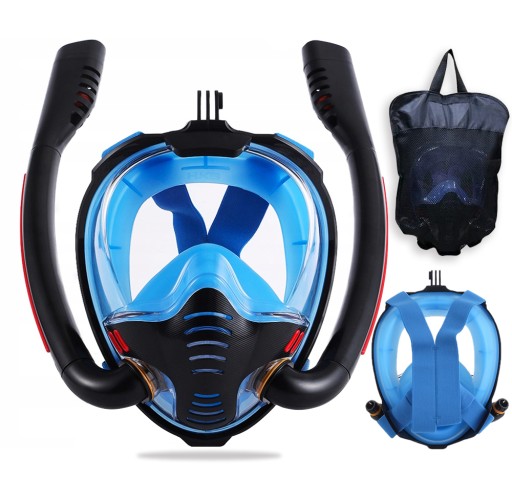 ✅ Повнолицева маска для СНОРКЕЛІНГУ з двома трубками L/XL