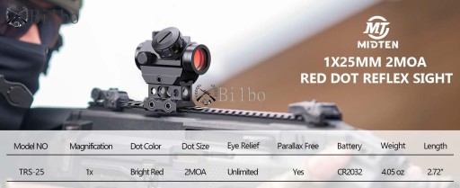 Приціл з червоною точкою виготовлений з алюмінієвого сплаву з анодованим матовим чорним покриттям, дуже міцний.