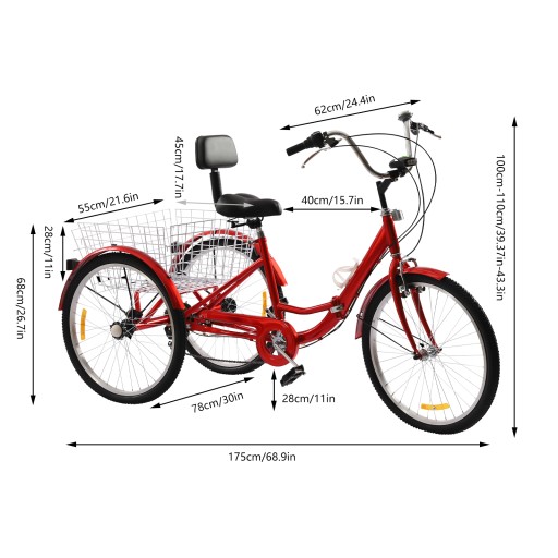 - Висока безпека: переднє гальмо V-brake і заднє утримуюче гальмо забезпечують потужне та прогресивне гальмування за різних температур і дорожніх умов. Він також оснащений переднім світлодіодним ліхтарем і відбивачами, які забезпечують чітке бачення та роблять триколісний велосипед більш помітним уночі. Тим часом три гумові шини мають протиковзкий малюнок, який може мати хороший протиковзкий ефект для забезпечення безпеки водіння.