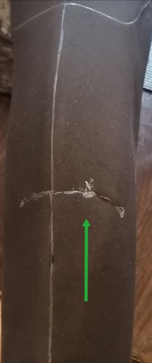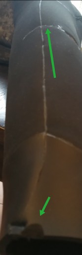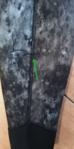 Після вивертання ноги навиворіт, на фото видно потовщення та невелика втрата піни біля манжети на щиколотці.