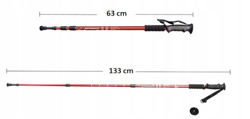 Палиці регулюються по висоті від 63 до 133 см. Це означає, що вони підійдуть будь-якій людині зростом від 142 до 202 см.