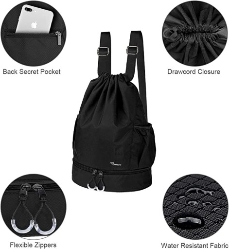 Сумка на шнурках Ryaco — це чудова сумка з прозорою пластиковою кишенею в основному відділенні, яка дозволяє носити чисті та брудні речі в одній сумці, але в різних кишенях. Ідеально підходить для купальників, змінного одягу чи інших речей, які не протікають. вологі речі.