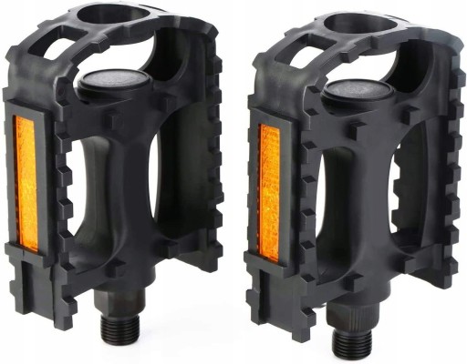 Педалі для велосипедів MTB/TREKKING, чорні. Побудований на сталевій осі та кулькових підшипниках. Оснащений світловідбивачами, що підвищують безпеку дорожнього руху. Вони мають розміри 95х75 мм, вага 312 г