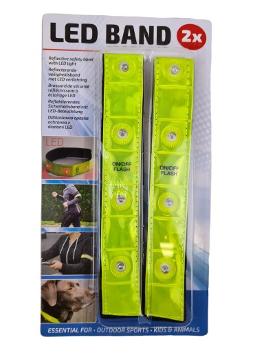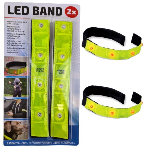 Забезпечте хорошу видимість під час вечірньої прогулянки або пробіжки завдяки світловідбиваючим пов'язкам, що світяться. Батарейки входять в комплект, тому вони готові до негайного використання.