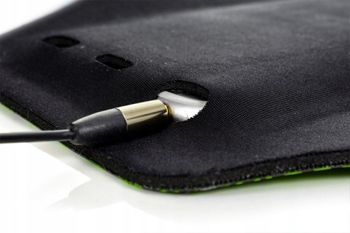 Коли телефон поміщений всередину, він міцно тримається в чохлі, оскільки неопрен оточує його з усіх боків. Крім того, отвори, розташовані у відповідних місцях, дозволяють підключити до телефону навушники, зарядний пристрій або павербанк, не виймаючи його з чохла.
