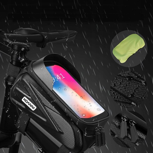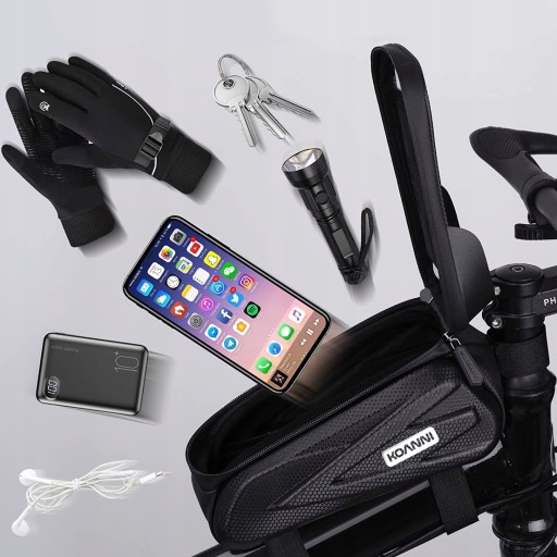 Місце для дрібниць, доступ до телефону, захист від дощу та бруду - це сумка на велосипедній рамі з тримачем для телефону. Його можна стійко закріпити на велосипеді, а у верхній частині можна розташувати телефон за плівкою. Ви матимете безперебійний перегляд екрана навіть під час водіння. Спеціальний сонцезахисний козирок захистить зір від відбиття сонячних променів. Що важливо, сумка дуже містка. У нього можна помістити багато корисних речей, наприклад, окуляри, мультитул або гаманець.